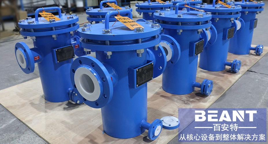 襯氟精密過濾器襯氟精密過濾器主要由接管、筒體、濾籃、法蘭、法蘭蓋及緊固件等組成。安裝在管道上能除去腐蝕性流體中的較大固體雜質(zhì),使機(jī)器設(shè)備(包括壓縮機(jī)、泵等)、儀表能正常工作和運(yùn)轉(zhuǎn),達(dá)到穩(wěn)定工藝過程,保障安全生產(chǎn)的作用。 百安特可根據(jù)不同的介質(zhì)及工況條件選用合適的襯里材料及工藝,為客戶提供全面的過濾解決方案。